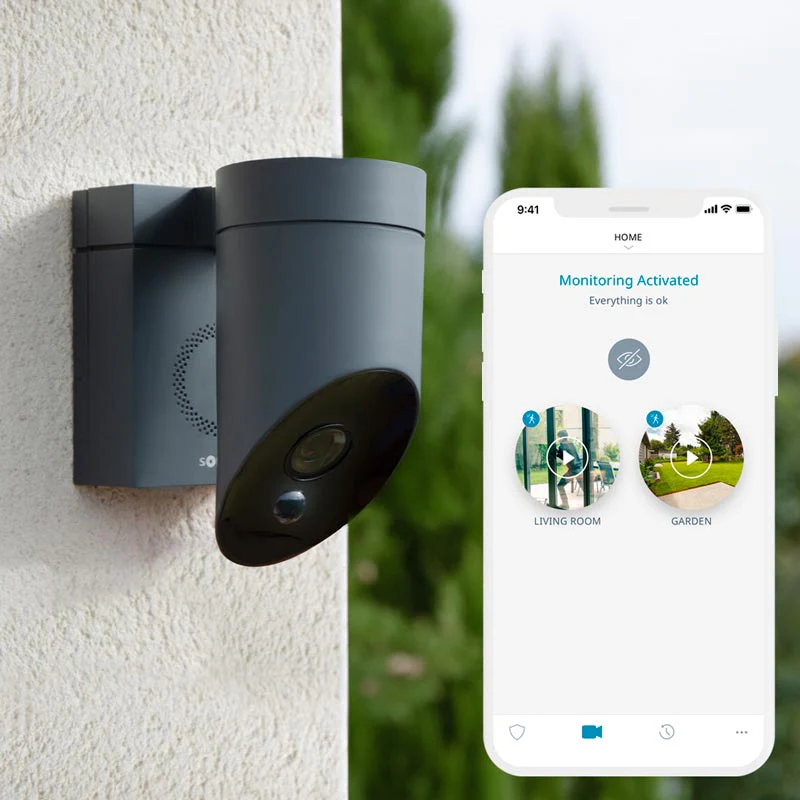 Η εξωτερική κάμερα Somfy αποτρέπει απόπειρες εισβολής με έξυπνη ανίχνευση, ενσωματωμένη σειρήνα 110dB και δυνατότητα σύνδεσης με εξωτερικό φωτισμό. Μόλις εντοπιστεί κίνηση, λαμβάνετε άμεσα ειδοποίηση και βίντεο στο κινητό σας μέσω της εφαρμογής Somfy Protect, ενώ μπορείτε να ενεργοποιήσετε τη σειρήνα και τα φώτα απομακρυσμένα.